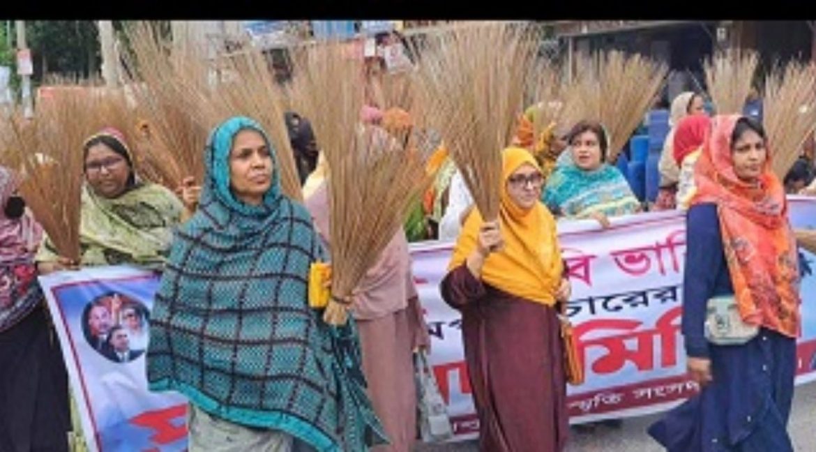 শনিবার (২৪ মে) বিকেলে নাটোরে শতাধিক নারী ঝাড়ু মিছিল করেছেন।